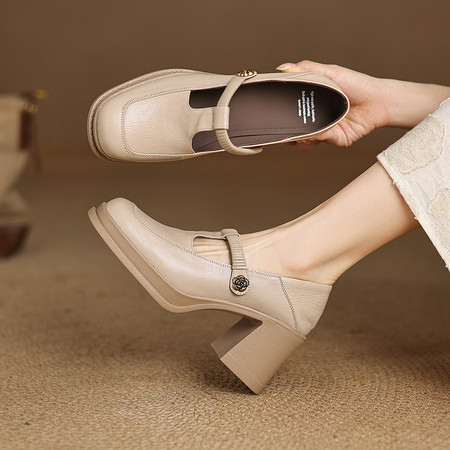 低跟 深口 头层水洗牛皮